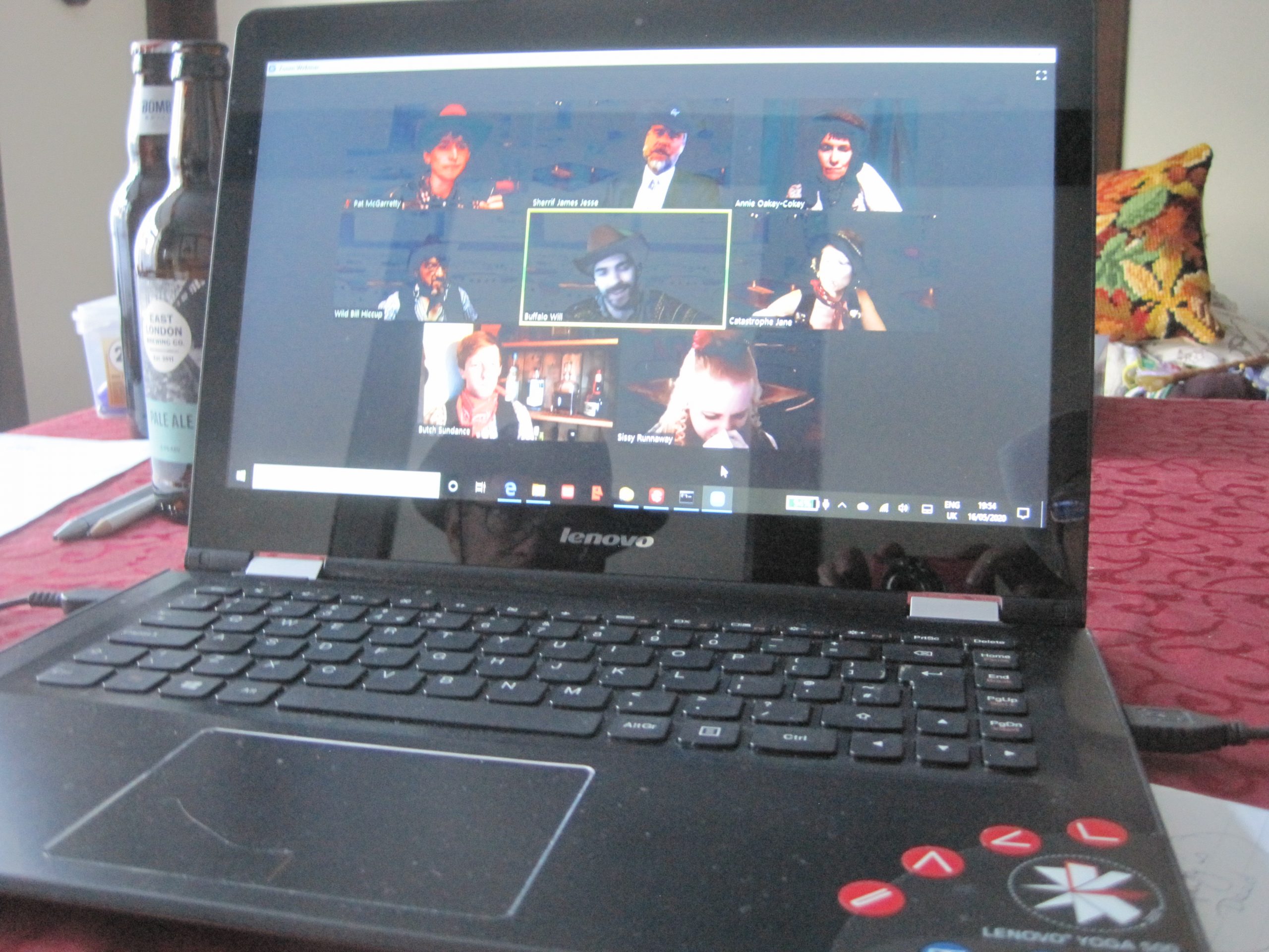Wearing our cowboy hats, we headed (online) to the Crazy Horse Saloon; a watering hole for dusty cowboys, gunslingers and card-playing mavericks. Wyatt Burp had been found dead on the outskirts of town and the Sheriff was looking for answers…..